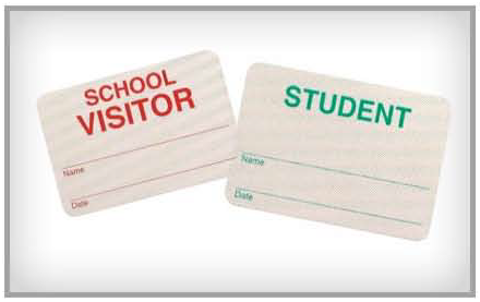 These badges expire in either a half-day or full-day time frame to show a visitor’s time is up, and come with pre-printed school titles like “STUDENT” and “SCHOOL VISITOR” |